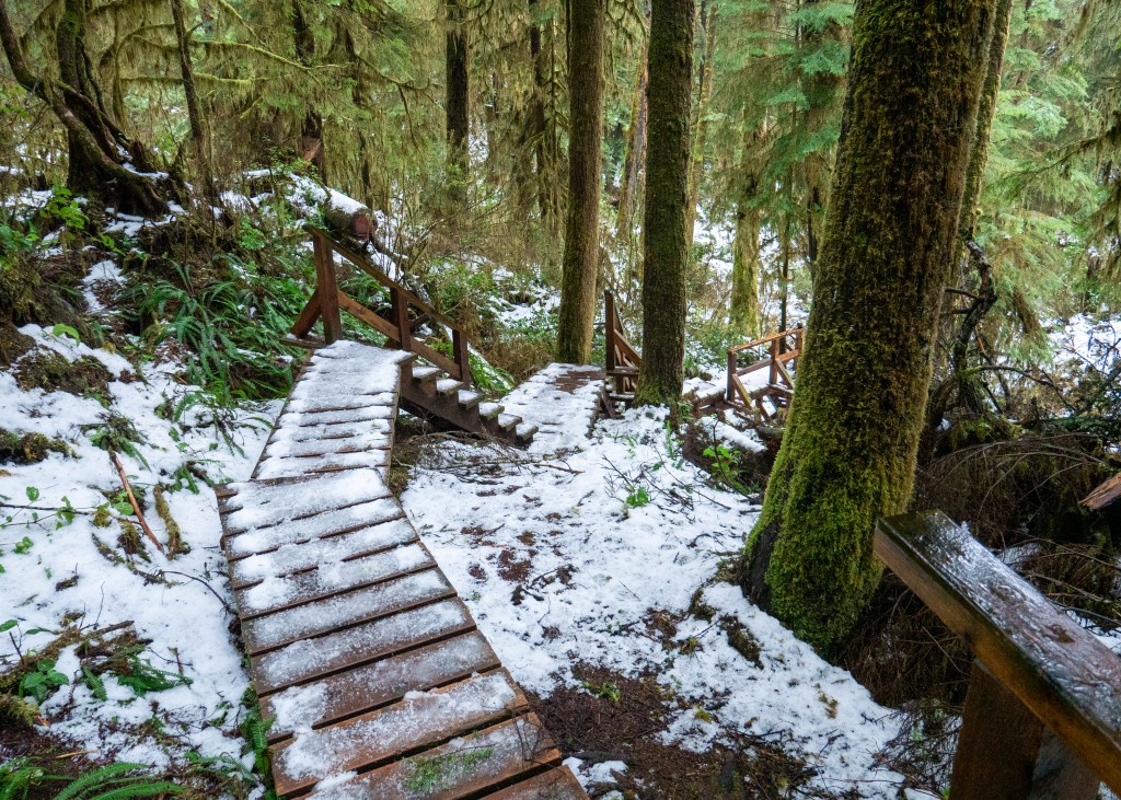 Other than checking out the beaches, we also completed part of the Rainforest Figure Eight Trail. This trail consists of two loops – A and B – but unfortunately, loop B was closed during our visit. This was likely due to all the snow that had fallen in Tofino the weekend prior to our trip.